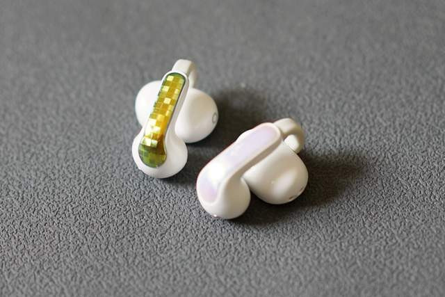 耳机除了在侧面加入美甲贴片外,还在内部加入了RGB灯效,当需要夜跑时,不仅颜值突出,同时也增加了安全性。