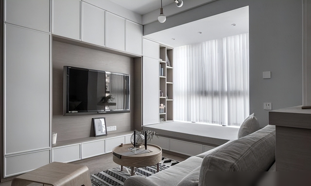 并且选择收纳柜的方式,如果你的空间条件足够宽敞,可以直接选择开放式的收纳柜,这样一来就可以打造出更为时尚的空间感,不会因为封闭式的设计太过压抑影响空间的通透感,同时也会让你的视觉焦点转移到收纳柜上,避免电视机占据太多的视觉焦点。
